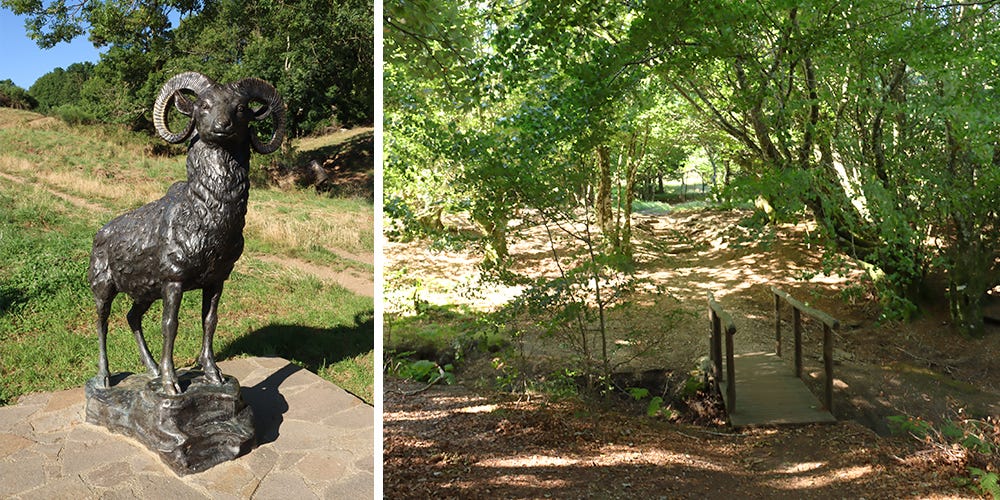 The 8-kilometre hike, called ‘Circuit: Le Sommet du Caroux’, starts in the little hamlet of Douch, part of Rosis. By following the simple yellow stripes, this walk takes about three hours (2.5 without moaning kids…), according to the sign. Chéri and I left in good spirits, to begin with an ascent of about 300 meters through a beautiful forest. Soon enough, the path went horizontal again, and we marvelled at the breathtaking view over the Espinouse Mountains, part of the Haut-Languedoc Regional Natural Park. A bit further on, Chéri and I arrived at the orientation display so that we understood what we saw in front of us. The Caroux is a real mountain, split by rivers and canyons like the Gorges d’Héric and the Gorges de Colombières. Gazing over the magnificent landscape, it was easy to understand how this magical place has inspired many mysterious legends.