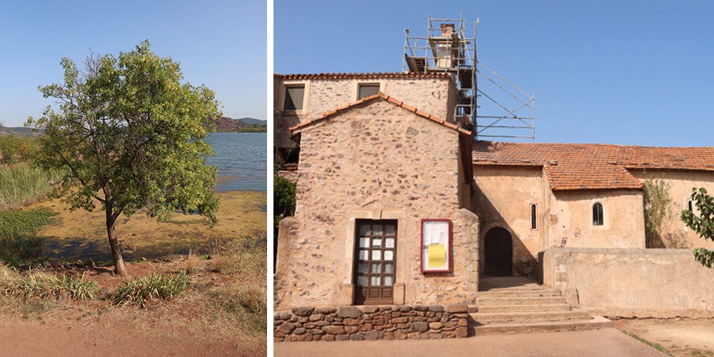 This deserted little village, located on the north bank of the Lac du Salagou, was evacuated before building the dam for the lake