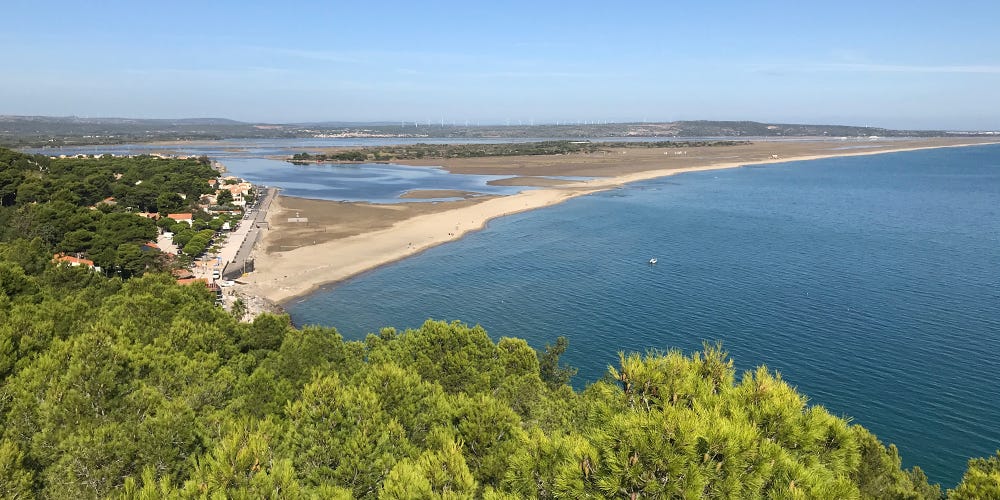 In Leucate, you can do several easy walks around 7 kilometres in length, like the Sentier du Guetteur. Guetteur means watcher in English, and this trail takes you from the beach of La Franqui over the cliffs to Leucate's lighthouse. Or the other way around, as you walk back along the same path. Be careful at the edges of the cliffs, as there are no barriers.