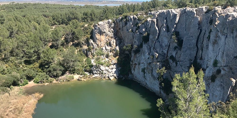 The Massif de la Clape hides another treasure. Right in the heart of this unique landscape lies a mysterious phenomenon called the Gouffre de L'Oeil Doux, literally translated as the "Sweet Eyed Sinkhole". This emerald-green lake, surrounded by 40-metre-high cliffs, lies in the middle of scrubland and pine forests. Keep in mind that swimming is forbidden.
